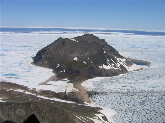 1) Carsten Egevang (copyright). Little Auks at Kap Höegh 2) Jeroen Creuwels (copyright). There are an estimated 100,000 pairs of Little Auks at the Kap Höegh colony! 3) Aerial photo of the Kap Höegh showing location of the cabin and the Little Auk colony (the stripe of pale rock on the steep slope). 4) Little Auk with colour rings. The unique colour combination of the rings is used to identify individuals at the colony. 5) There are incredible mountains at Kap Höegh 6) Summer view of Kap Höegh. This photo is taken from the Little Auk colony looking down on the hunting cabin. 7) Thousands of Little Auks in the fog 8) View from Kap Höegh looking north. This photo was taken in June.